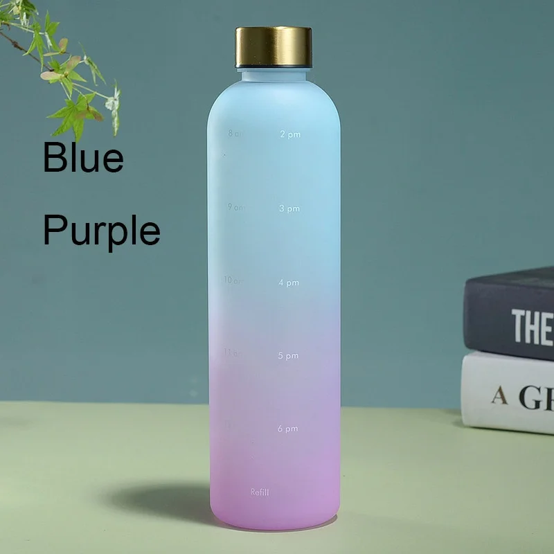 Gradient 1000ml Water Bottle with Time Marker for Hydration